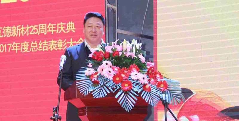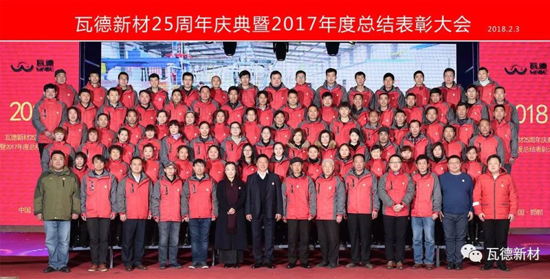2月3日上午瓦德新材25周年慶典暨2017年度總結(jié)表彰大會于河北邯鄲五谷豐登大酒店隆重召開。此次會議的主題為“感恩 共享 發(fā)展”。集團(tuán)董事長謝富強(qiáng),總經(jīng)理常金秀,中高層領(lǐng)導(dǎo)干部,武漢工廠、邯鄲工廠、安徽工廠職工代表,社會各界友人等近300人歡聚一堂, 共同分享收獲的喜悅,迎接全新的挑戰(zhàn)。